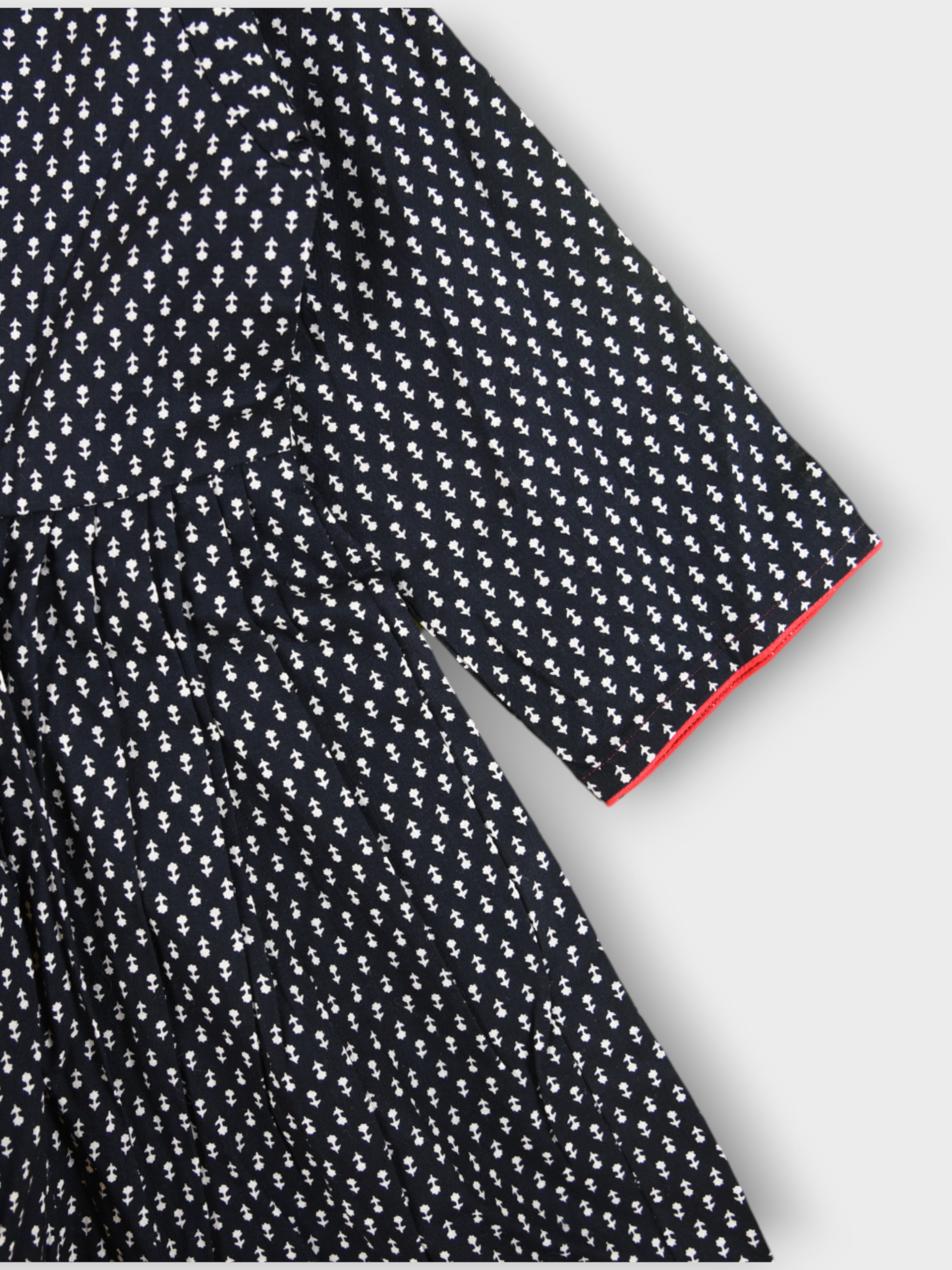 Girls Black Motif Tie Up V-Neck Angrakha Dress
