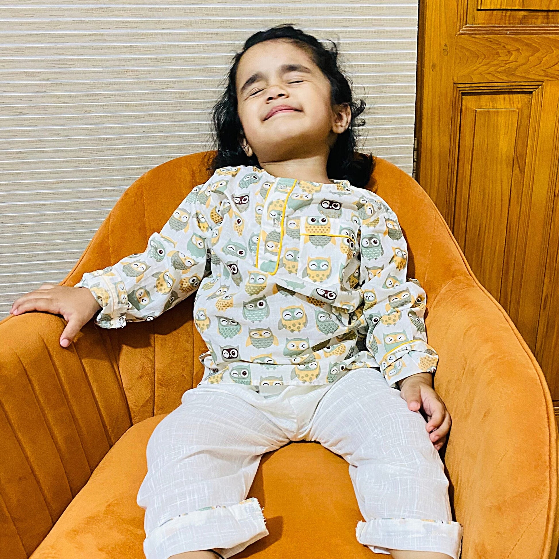 Kids Green Beige Owl Unisex Night Set