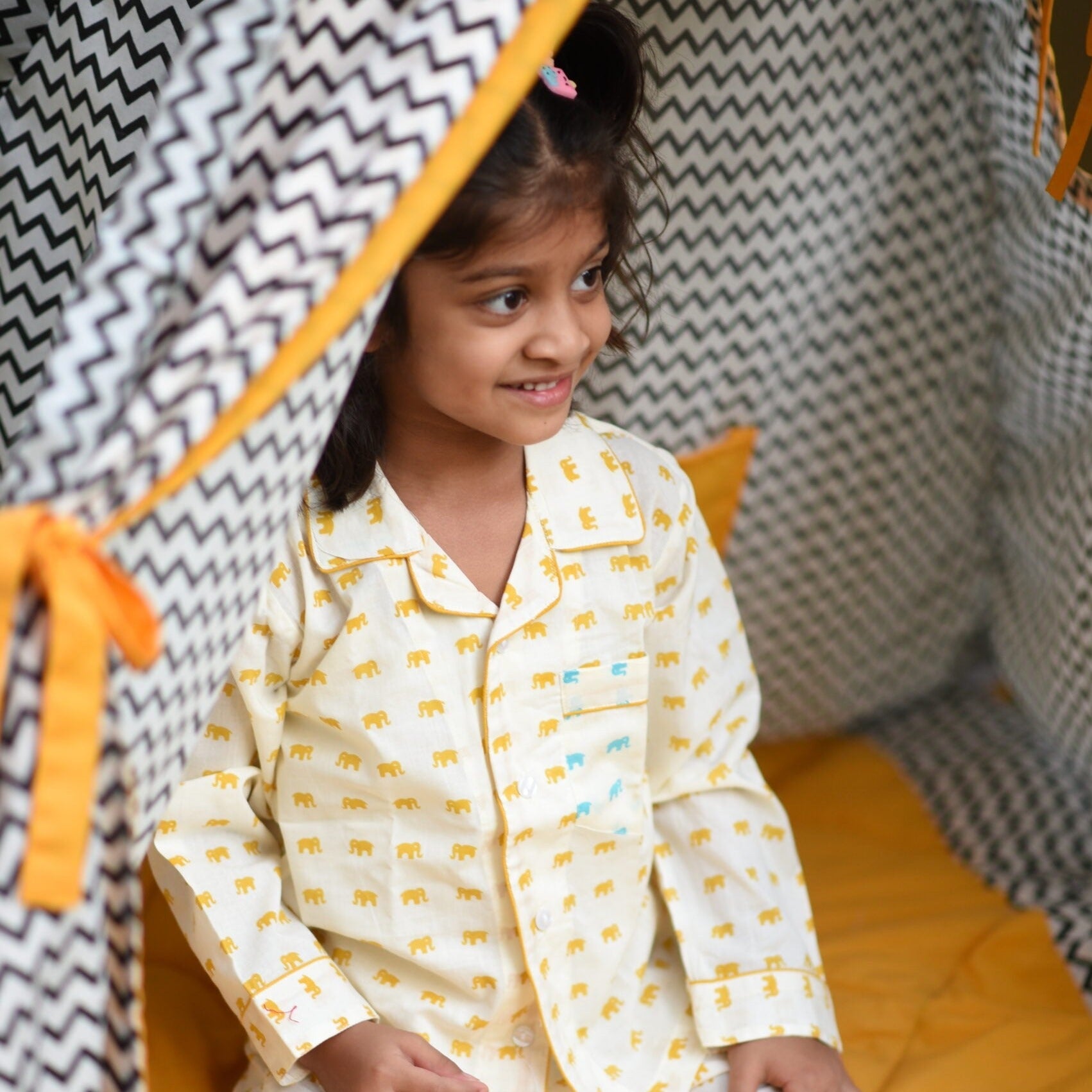Kids Mustard Tiny Elephant Unisex Night Set
