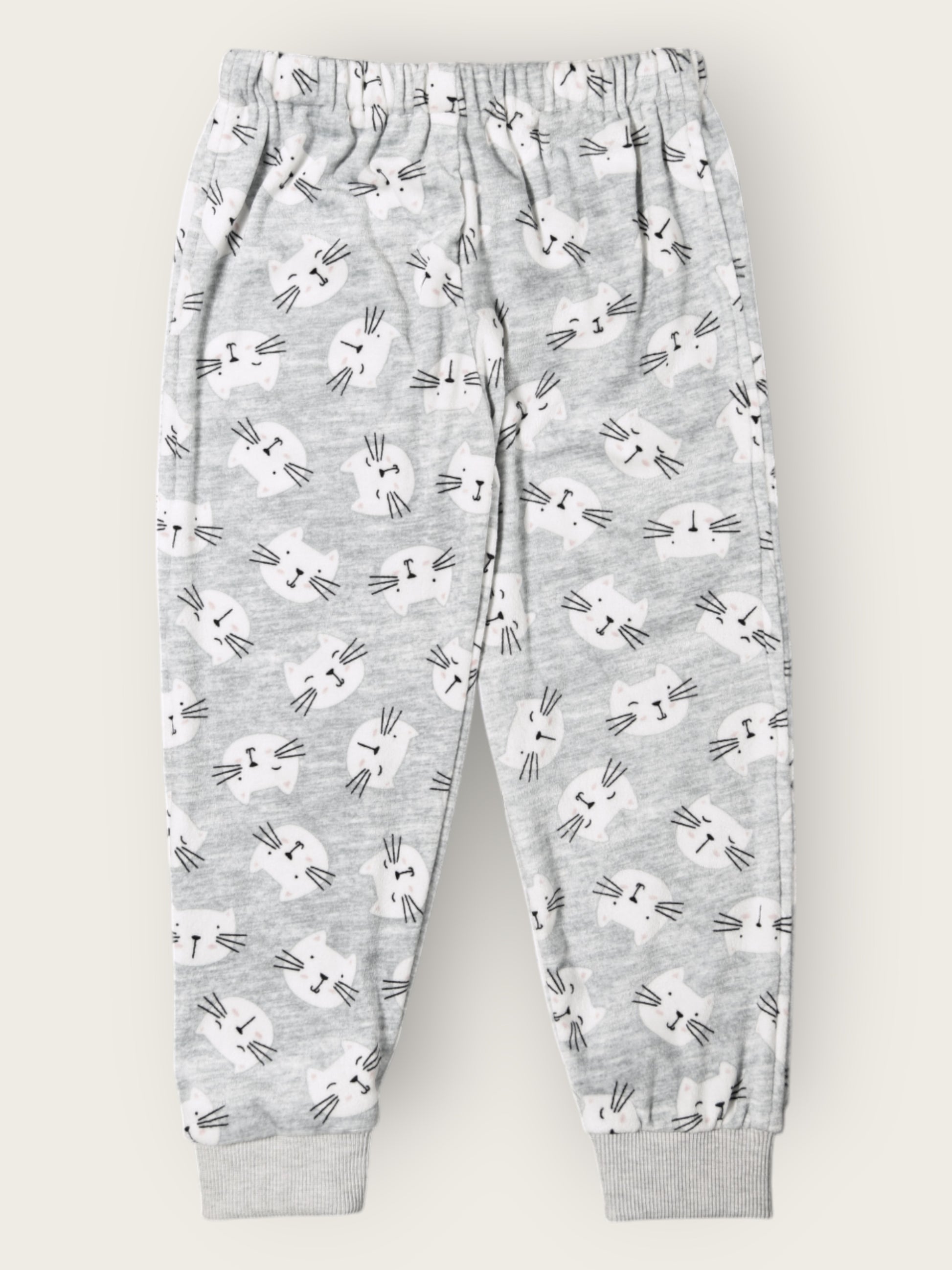 Kids Grey Cat Fleece Winter NightSet