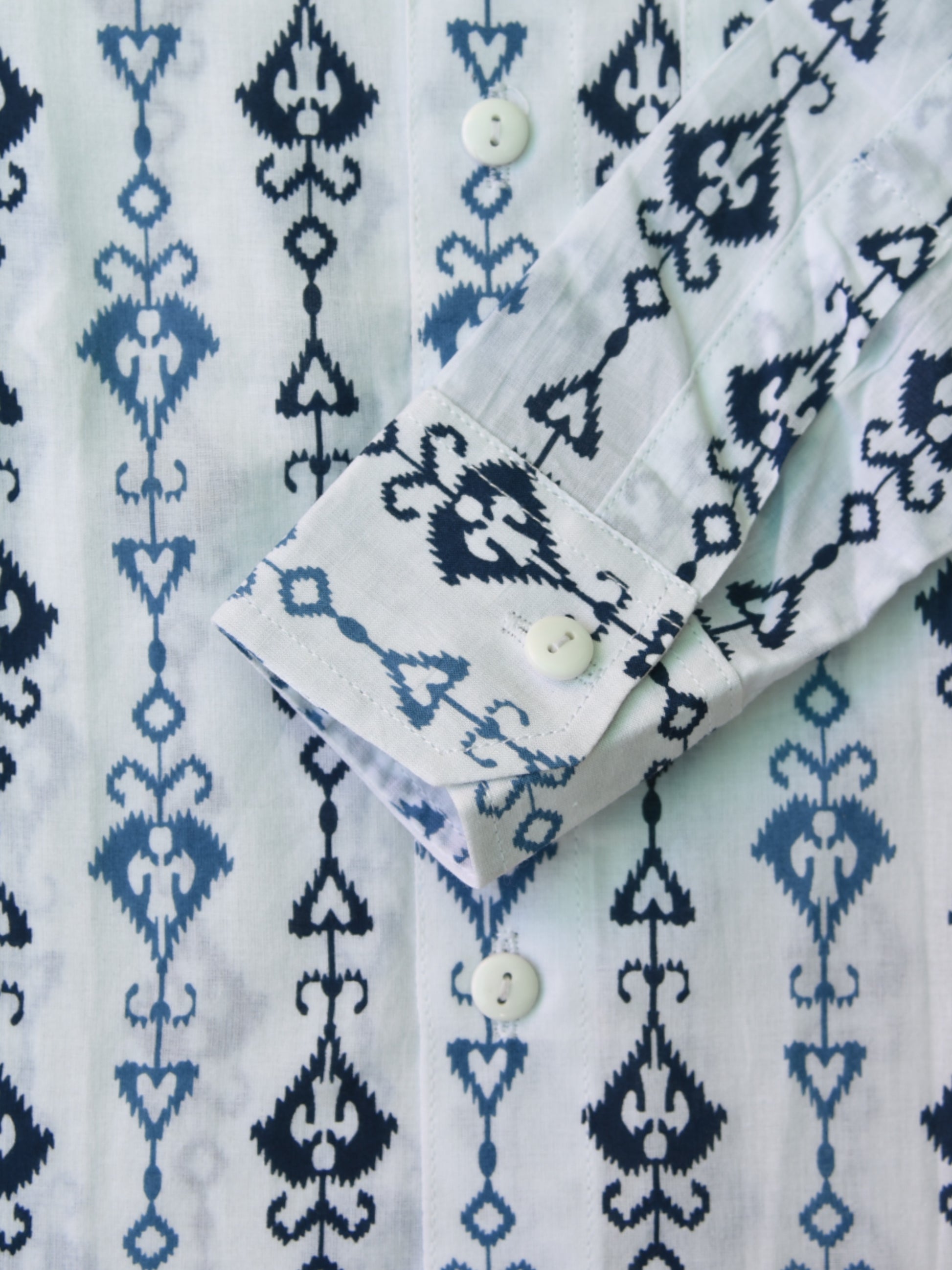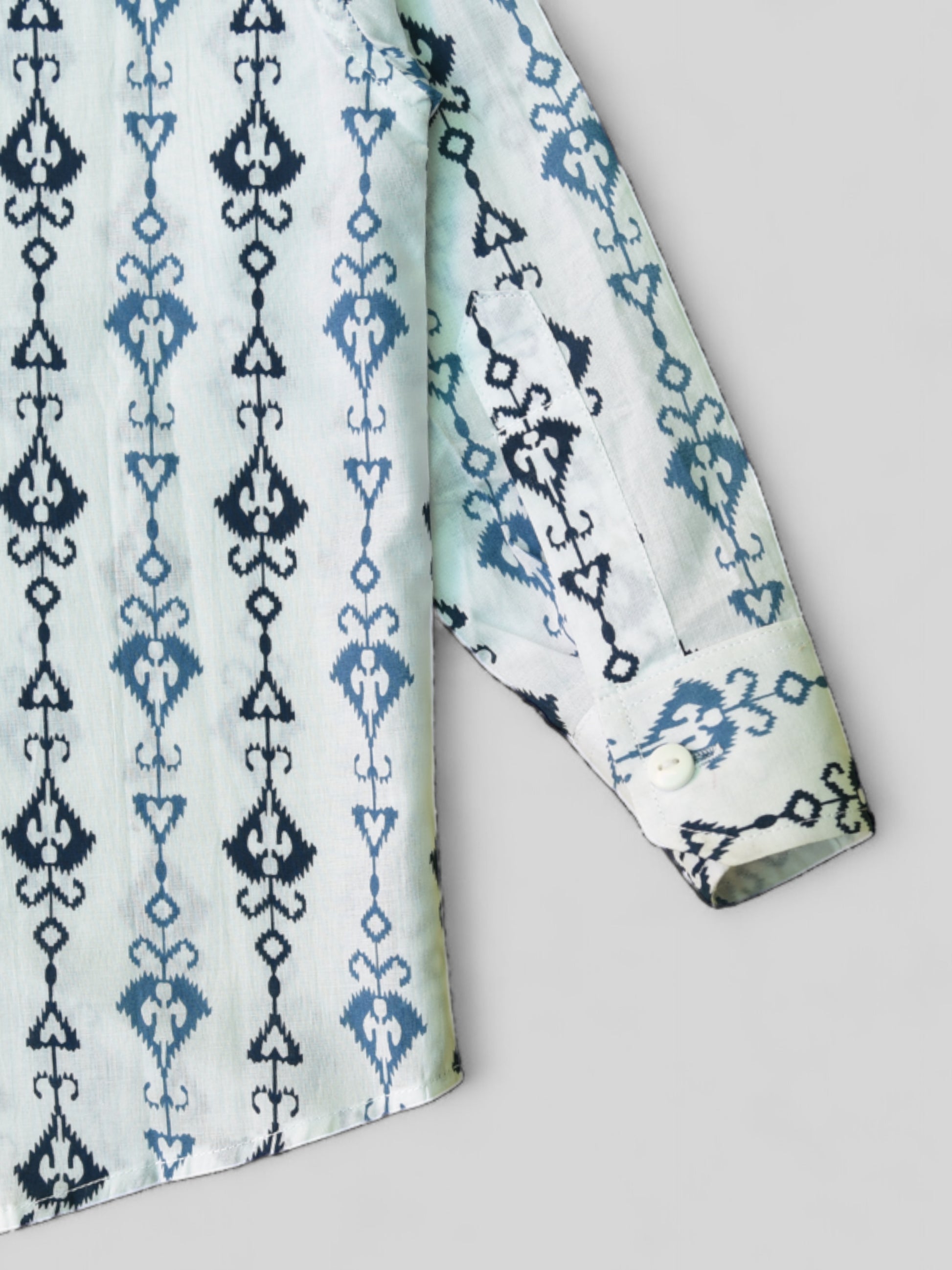 Boys White Tribal Arrow Cuff Full Sleeves Band Collar Shirt